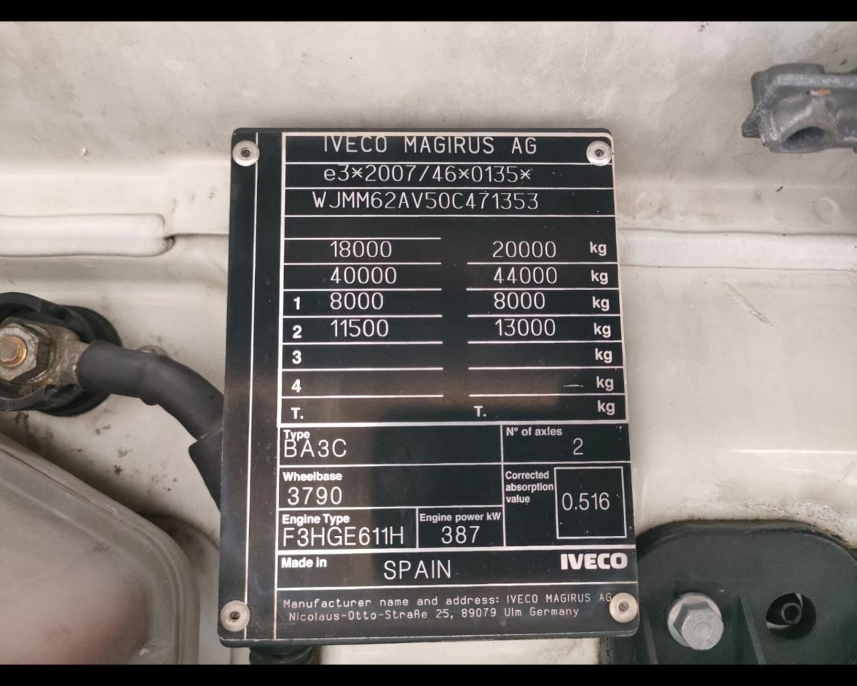 TRATTORE IVECO S-WAY AS440S53T/P, Prim.immatricolazione 5/2022 km403.385 Passo 3790mm , Normativa inquinamento EURO 6, Motore con 526cv/387kw / 12.882cc,Sicurezza A.D.R., Cambio automatico, Rallentatore idraulico intarder, Bloccaggio differenziale, Ive-connect con schermo 7 pollici e navigatore, 2 serbatoi lato dx 710lt e sx 530lt , Cruise control, Climatizzatore automatico, Raffrescatore da fermo, Vetri e specchietti elettrici, Safety lock, Cerchi in ferro, Frigorifero + cassettone termico, Sospensione pneumatica Posteriore, Sedile guida gran comfort riscaldato/raffrescato, Visiera ,Webasto Due letti ,tromba monotonale dietro calandra , Spoiler e deflettori, neumatici 385/55R22.5